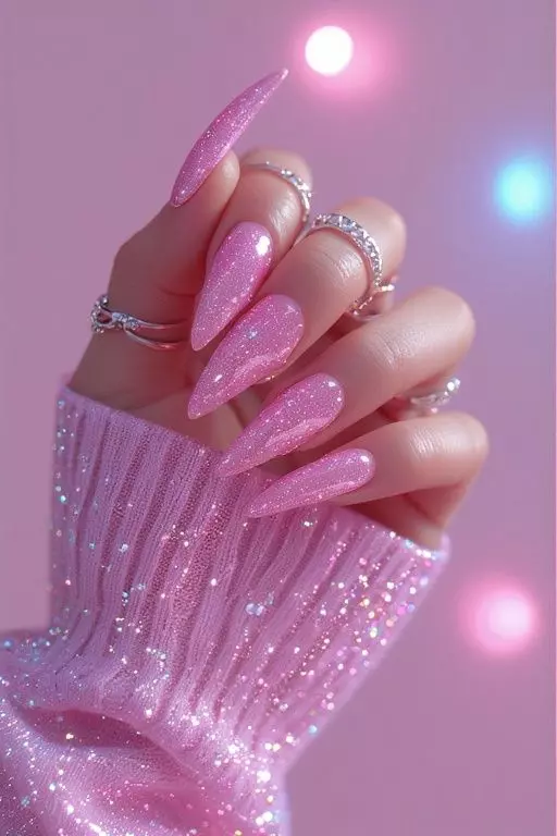 Pink, chrome silver, pastel shades, and glitter tones are very popular this year.