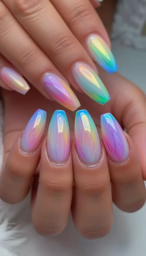 Ombre and aura nails are going viral across social media this year. The soft gradient effect creates a dreamy and magical look. Pink aura, sunset blends, and purple fades are especially popular. These designs look amazing under party lighting and camera flash. They add a soft glow effect to your hands. If you want something trendy yet artistic, aura nails are a great option.