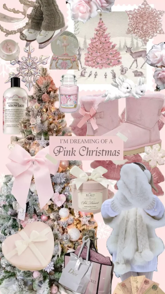 Coquette Christmas wallpapers use a color palette that feels soft, sweet, and luxurious. Popular choices include: