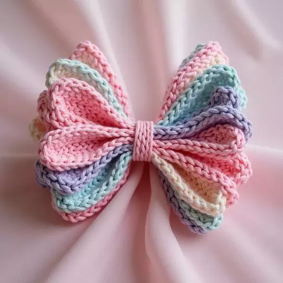 Multi color crochet bows are made by changing yarn colors in different rows. This creates a rainbow or striped effect which looks very attractive.