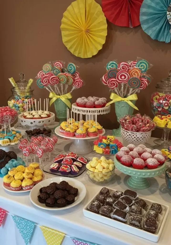 Los dulces y chocolates son irresistibles y también funcionan como elementos decorativos. Colócalos en cestas, frascos transparentes o en bandejas decorativas para que todos los invitados puedan disfrutarlos. Además de añadir color y variedad, los dulces aportan un toque divertido y comestible a tu decoración. Incluso puedes organizar pequeñas “estaciones de chocolate” como parte de la decoración de mesa, haciendo que la celebración sea más interactiva y memorable.