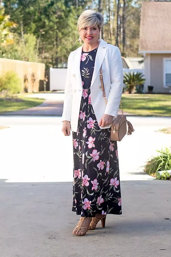 Floral dresses are a spring staple, perfect for Easter celebrations. Women over 50 can choose prints that are delicate and soft, avoiding overly large or bold patterns. Midi-length dresses or fit-and-flare styles flatter the body while remaining comfortable. Pair floral dresses with neutral shoes and subtle jewelry to maintain elegance. Light fabrics like cotton or chiffon keep the outfit breathable and comfortable. Floral dresses combine femininity with festive charm, ideal for spring gatherings.