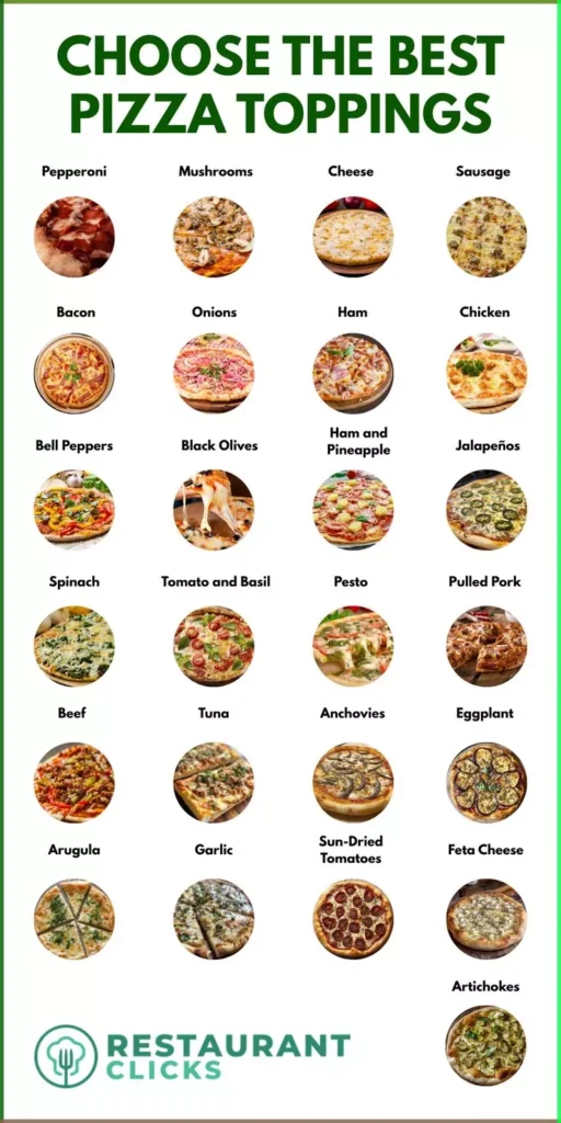 Toppings bring creativity into the pizza. Common gourmet toppings include mushrooms, grilled chicken, spinach, olives, sun-dried tomatoes, prosciutto, arugula, and caramelized onions.