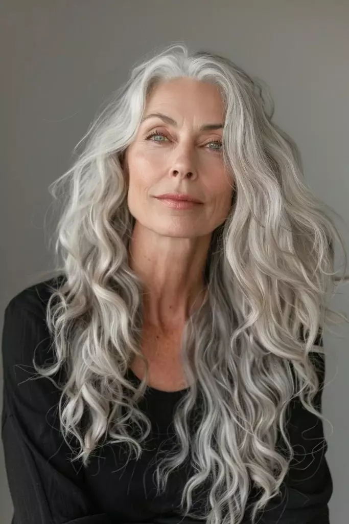 Long hair can still look graceful and elegant after 60 when styled correctly. The key is to keep the hair healthy and well-shaped. Long layers with soft waves add movement and prevent hair from looking flat or heavy. Face-framing layers are also important, as they soften facial lines and enhance natural features. With proper care and regular trims, long hairstyles can look youthful, feminine, and stylish at any age.