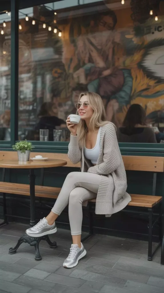 For casual outings, leggings provide the perfect balance of comfort and style. Pairing black or neutral leggings with an oversized t-shirt or tunic creates a relaxed and effortless look, while white sneakers add a sporty touch. This outfit is ideal for running errands, grabbing coffee with friends, or going for a casual stroll. Layering with a denim jacket, bomber jacket, or light cardigan not only adds style but also provides practicality for changing weather. Accessories such as a simple crossbody bag or minimal jewelry can enhance the outfit without making it look overdone. The key to casual leggings outfits is comfort without compromising on style, ensuring you look put-together even when keeping things simple.