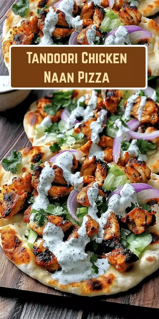 The pizza is topped with tandoori-marinated chicken, onions, green chilies, and a special mint or yogurt-based sauce instead of traditional tomato sauce. This gives it a rich and spicy flavor profile.
