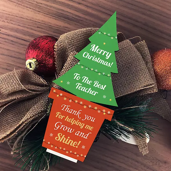 Christmas ornaments with a teacher’s name, the school year, or a small message can make touching keepsakes. Choose ornaments made of wood, ceramic, acrylic, or glass.